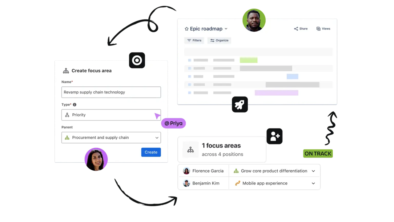 하나의 플랫폼에서 전략을 수립하고, 사람을 배치하며 실행까지 추적합니다. Focus, Talent, Jira Align의 통합 솔루션으로 조직 전체가 하나로 움직이는 경험을 만들어 보세요.