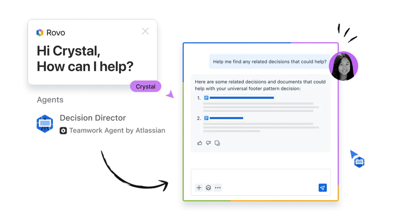 Rovo가 대화를 이해하고 필요한 정보 검색, 요약, 추천 등의 작업으로 작업 속도 가속화