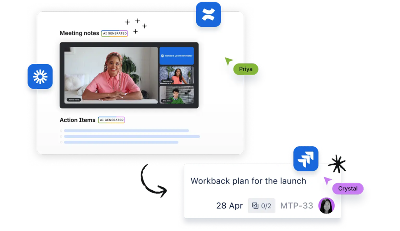 시차와 장소에 구애받지 않고 Loom 영상으로 우선순위를 전달하고, Confluence에 전략을 모아 관리하며, Jira에서 진행 상황을 추적해 팀이 중요한 일에 집중할 수 있습니다.