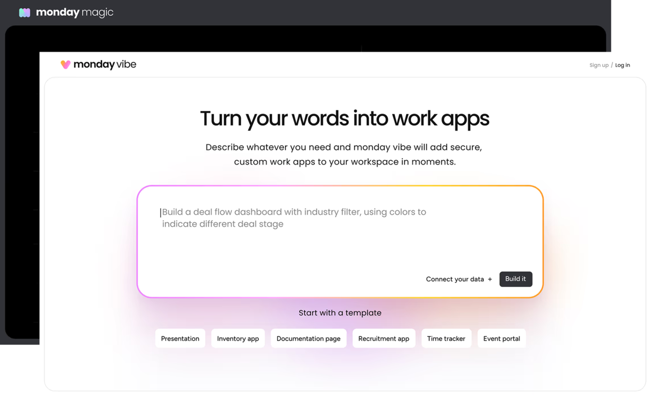 자연어 프롬포트만으로 맞춤형 대시보드, 모바일 앱, 외부 포털 등을 monday.com의